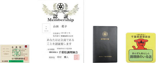 - 7.当会に入会されますと、会員証・認証・調理師手帳・ステッカー等、会が発行する製作物が取得できます。