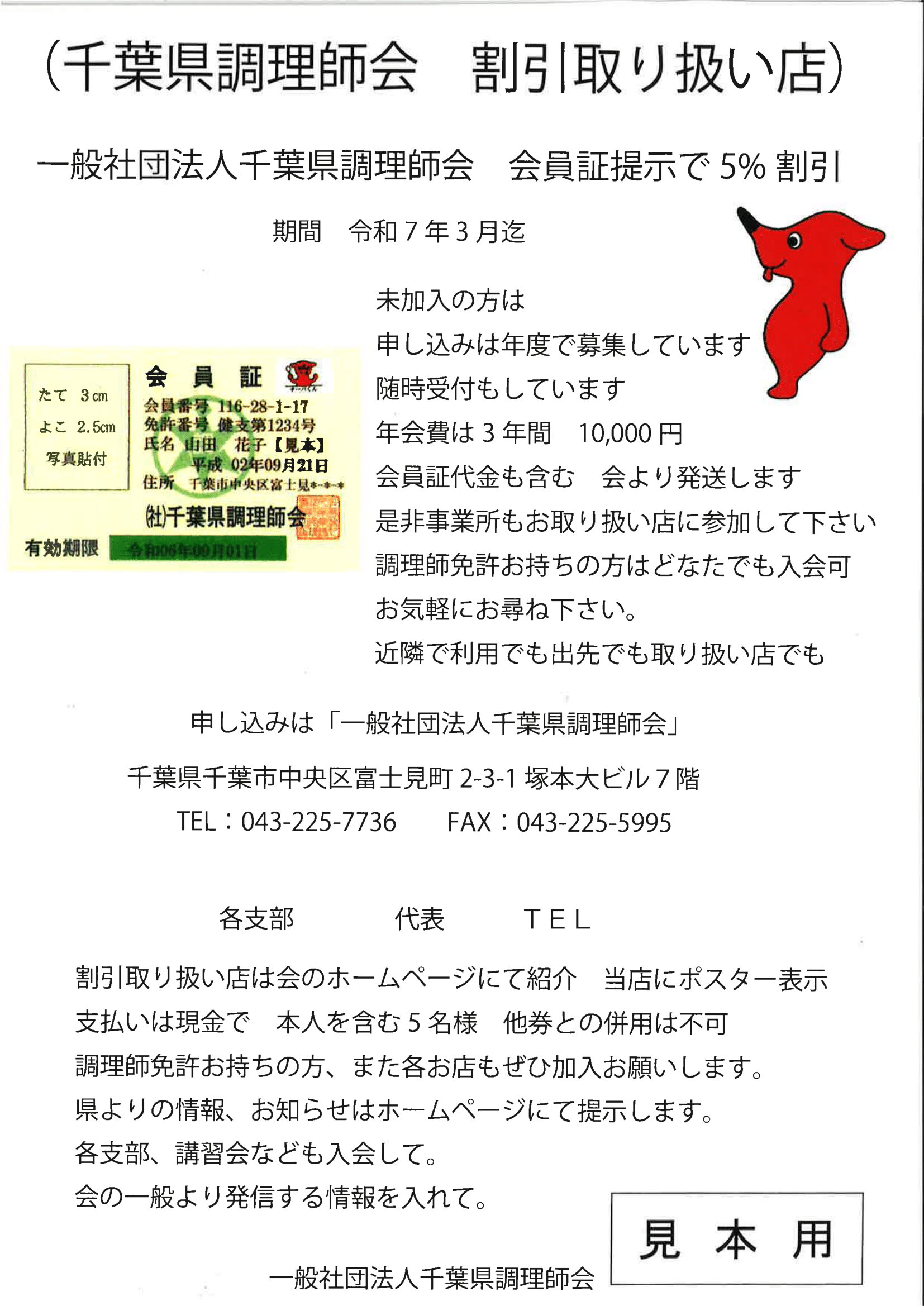 (正会員には会員証・認証・調理師手帳が発行されます。) - 県本部・賛助会員(団体扱い1年分) 入会金20,000円、年会費24,000円